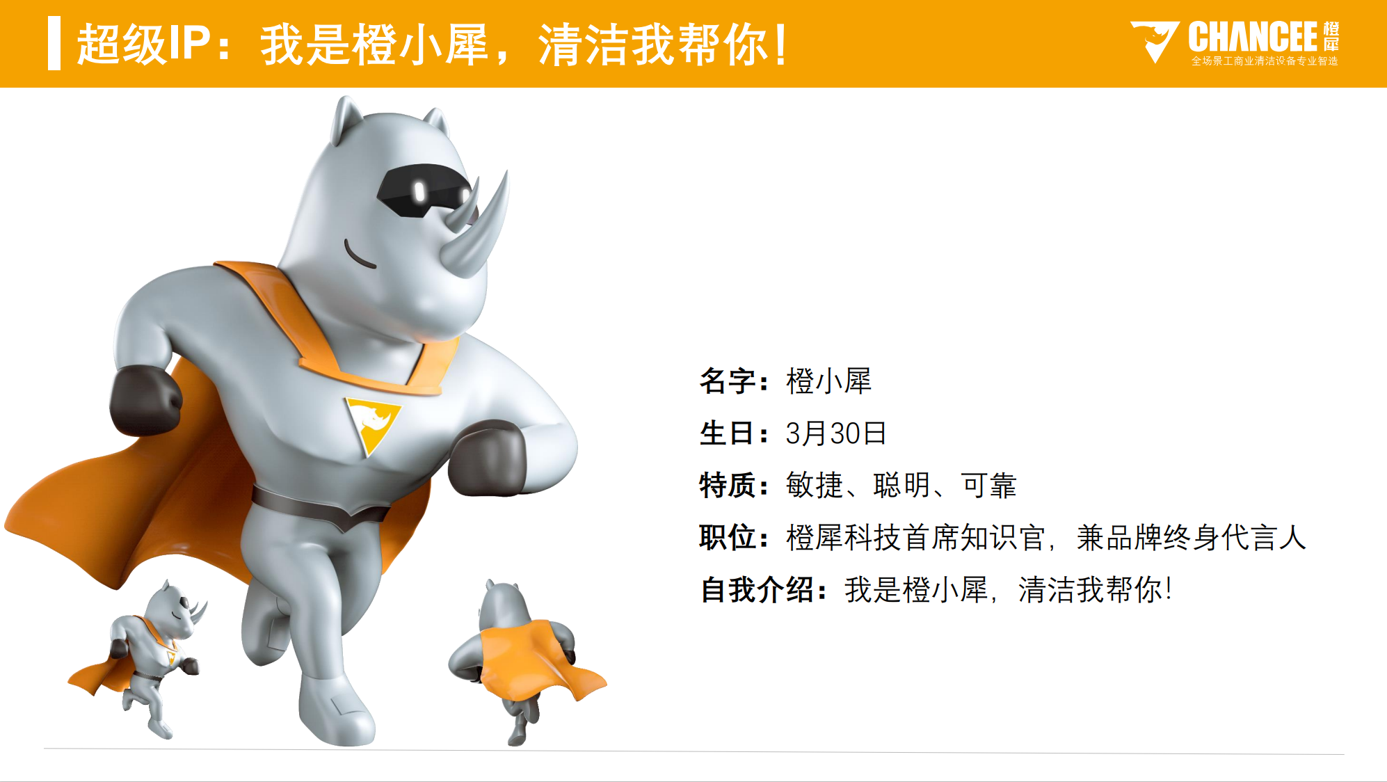 自我介绍:我是橙小犀,清洁我帮你!
